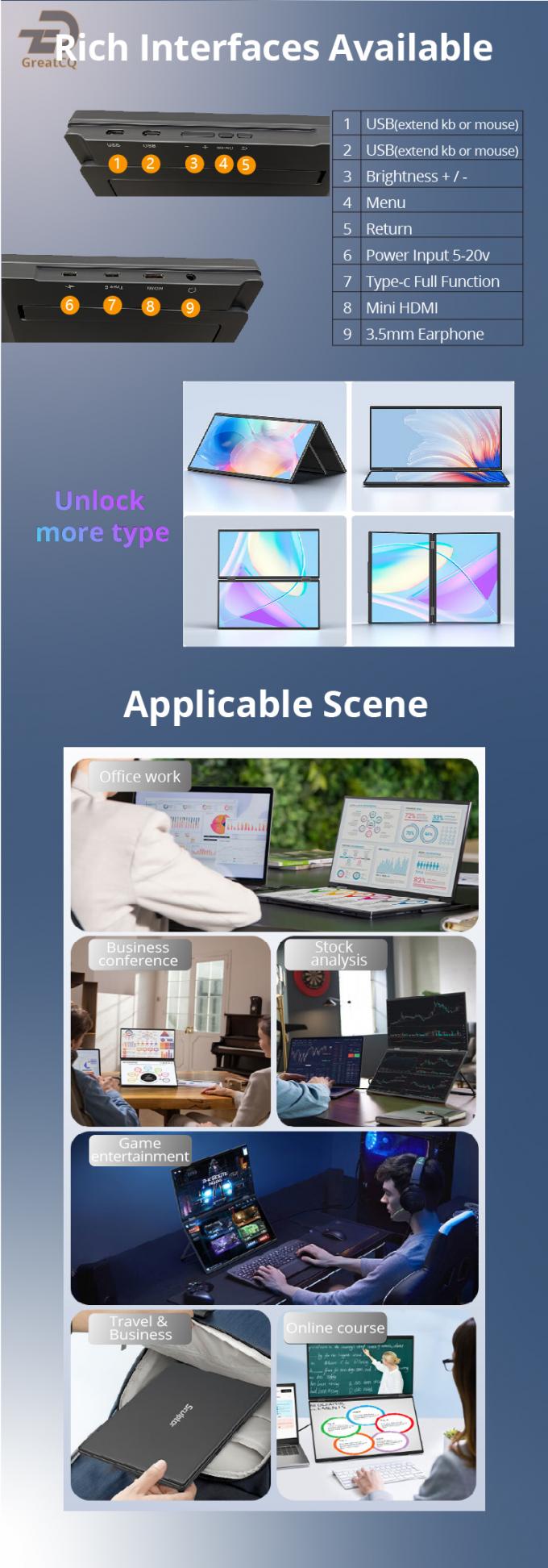 ♦ Portable Monitor Dual Screen for Triple Display and 100w Reverse Charge