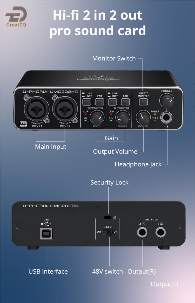 ♦ Hi-fi 2 in 2 out pro sound card